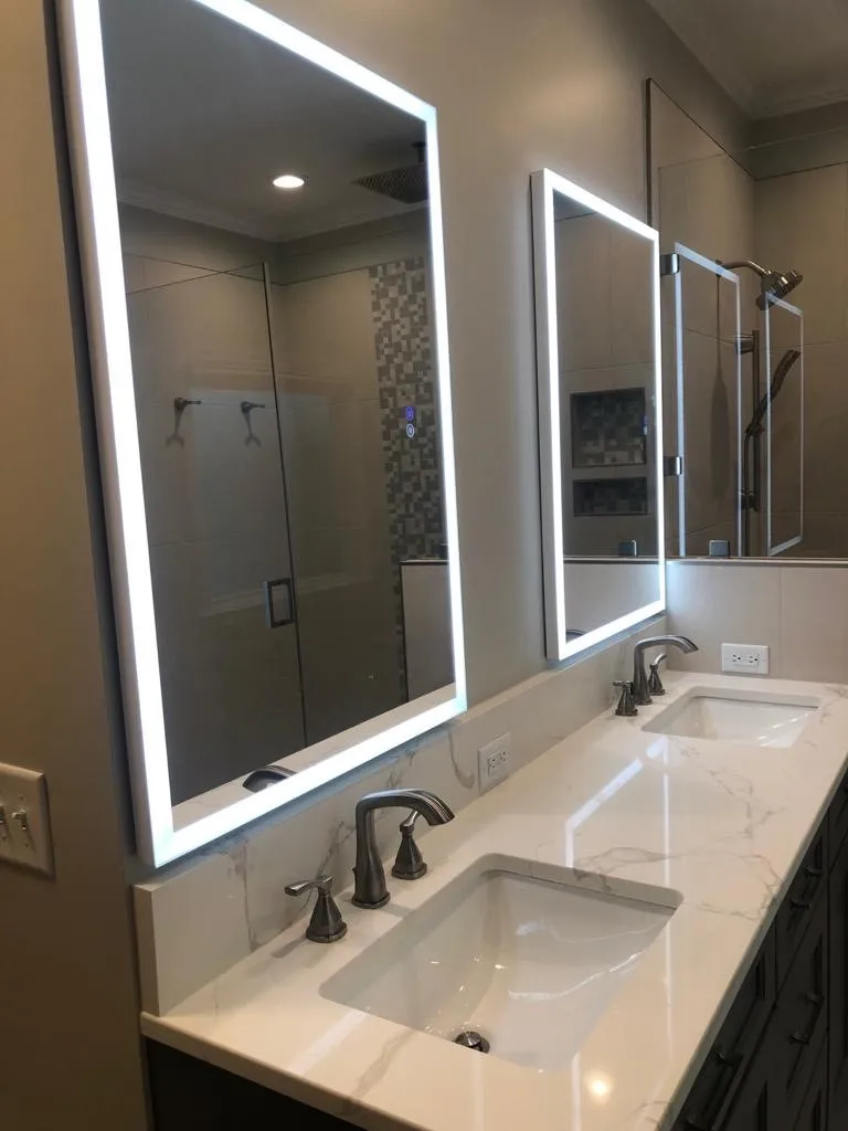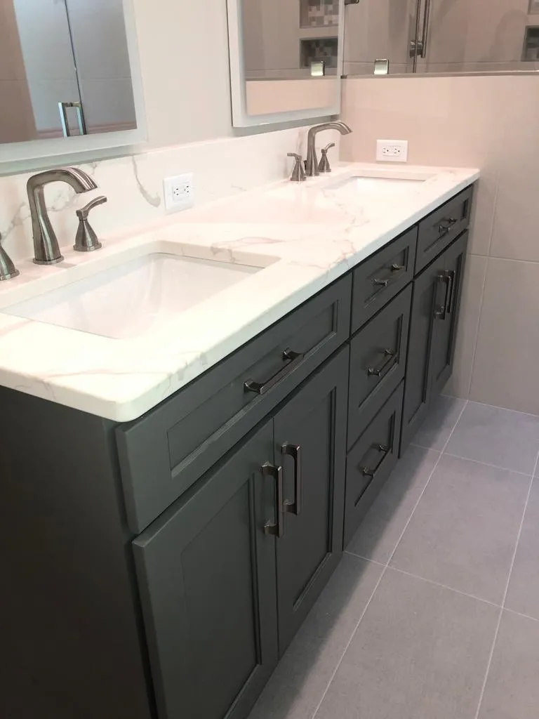 Quartz or granite countertops will shine in your new bathroom or kitchen!